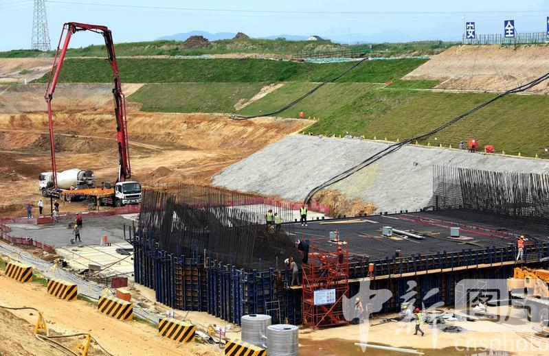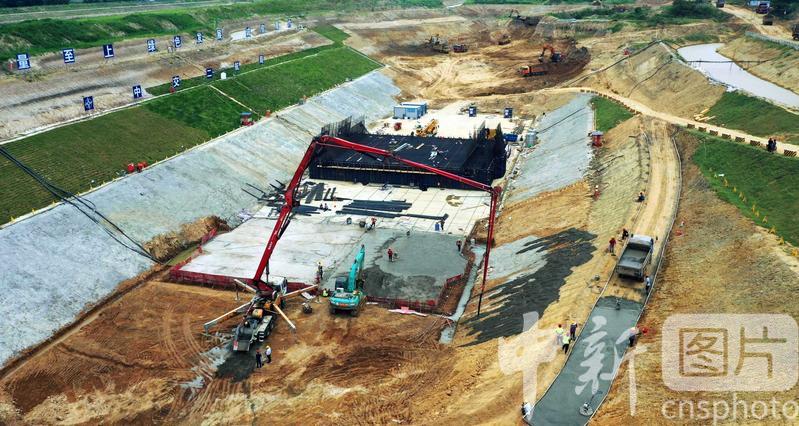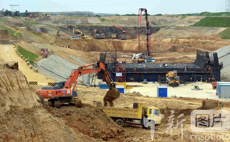 2020年8月7日,在引江济淮工程安徽省合肥市庐江县万山镇永桥村庐江船闸施工现场,中交第二航务工程局有限公司的建设者们用挖掘机正在紧张施工取土,运输土方工程车川流不息,船闸底部混凝土浇筑正在施工,建设现场一片繁忙景象。当日是农历二十四节气中“立秋”节气,中交第二航务工程局有限公司的建设者们抓住秋后晴天少雨,及时排涝施工,抢抓工程进度。