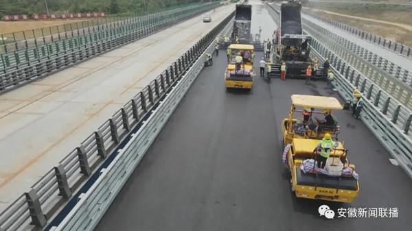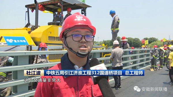 合肥西大门的312国道,交通量非常大,我们项目部也是攻坚克难,尽早地把这个桥开通,这个铺装完成以后,进行整个桥的动静态试验,七月下旬交工验收。