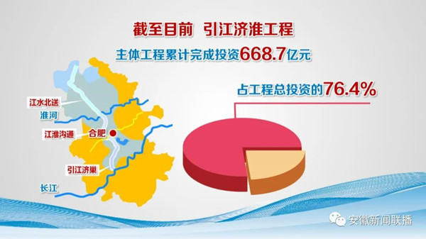 引江济淮工程自全线开工以来,目前主体工程累计完成投资668.7亿元,占工程总投资的76.4%。