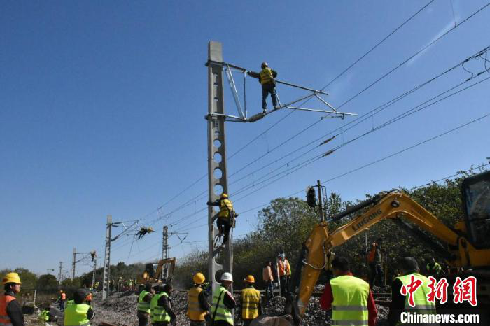 据了解,由中铁十局承建的引江济淮工程(安徽段)引起宁西、沪蓉高铁四电改建工程,主要内容包括宁西、沪蓉高铁改建工程涉及的通信、信号、信息及灾害监测,电力及电力牵引供电专业施工。工程工期长,施工任务重、安全风险大,共需要进行5次大的施工拨接。此次拨接为该工程第4次拨接施工,主要是因为由东向西的宁西铁路跨越引江济淮主河道,成为河道向北开挖的“拦路虎”,因此要在原有宁西下行铁路的南侧修建一条临时便线,为引江济淮工程腾出施工作业面。