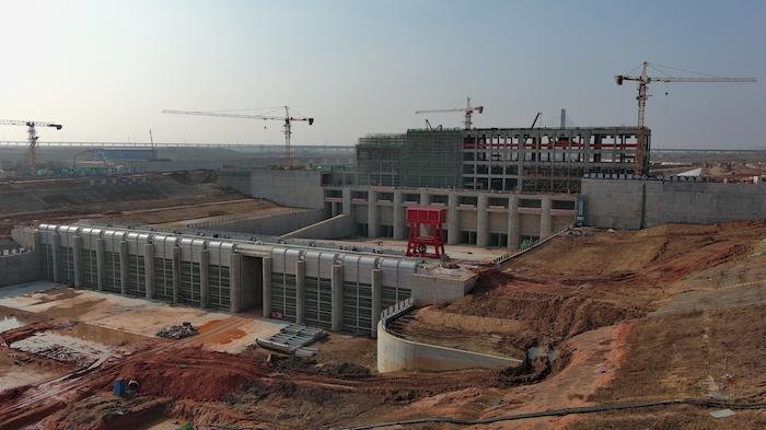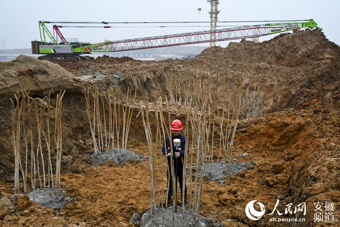 参建人员在蜀山泵站枢纽工作。人民网 周坤摄