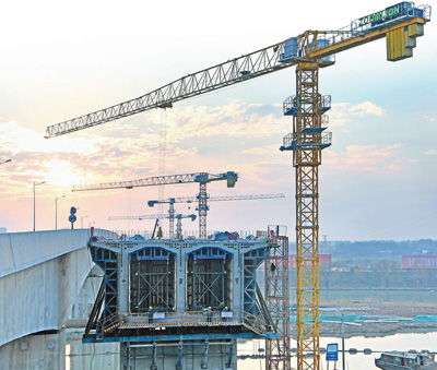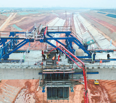 引江济淮工程安徽段东津渡大桥左幅桥梁施工现场。