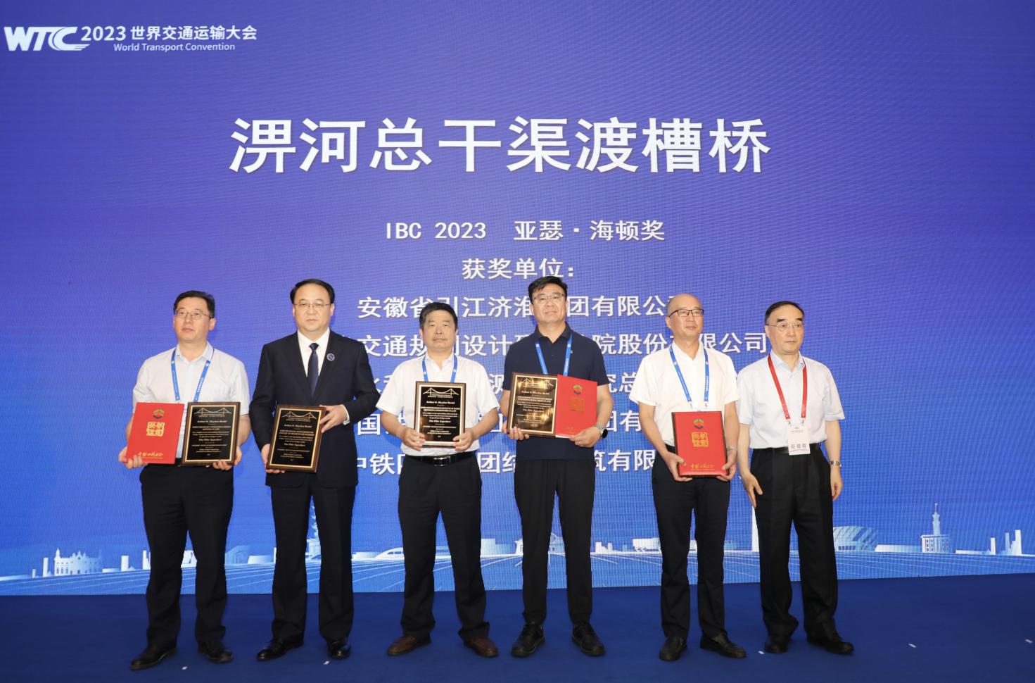 在6月15日中国科学技术协会、交通运输部、中国工程院、湖北省人民政府主办的2023世界交通运输大会(WTC2023)第五届桥梁发展论坛上,对2023年度国际桥梁大会(IBC)唯一荣获“亚瑟·海顿奖”的中国项目—引江济淮淠河总干渠渡槽进行了现场颁奖。中国公路学会理事长、交通运输部原副部长翁孟勇出席会议并颁奖。