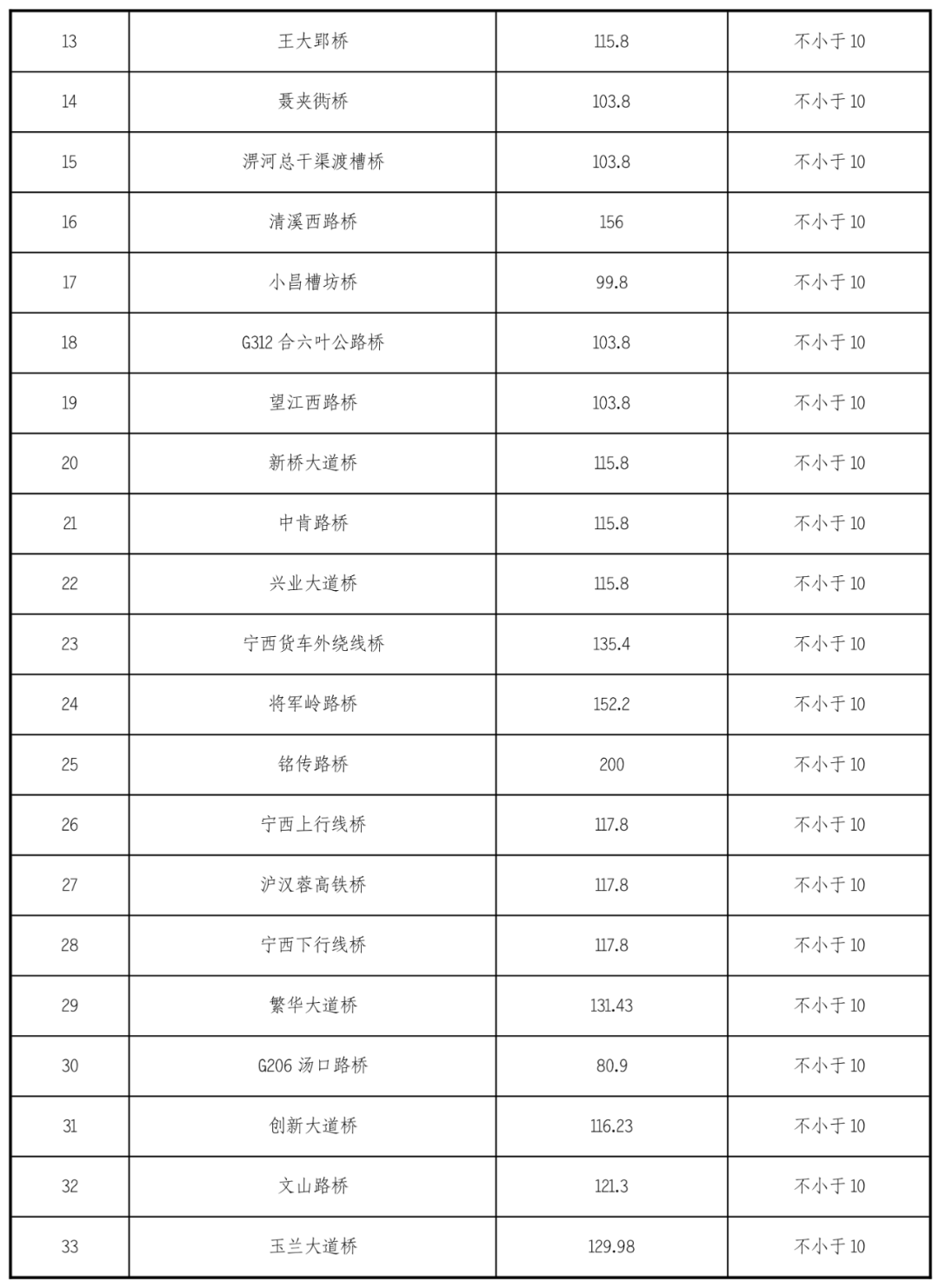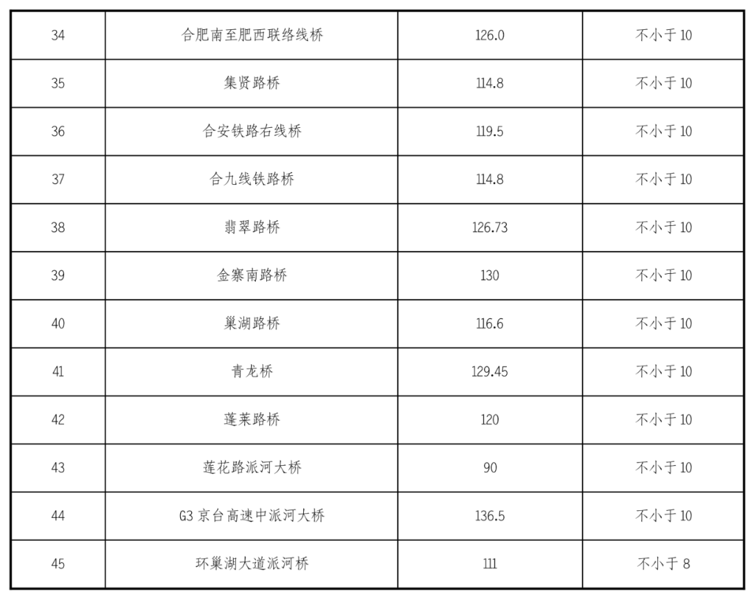 江淮沟通段航道沿线有现状桥梁45座,桥梁通航净空尺度参数见下表:
