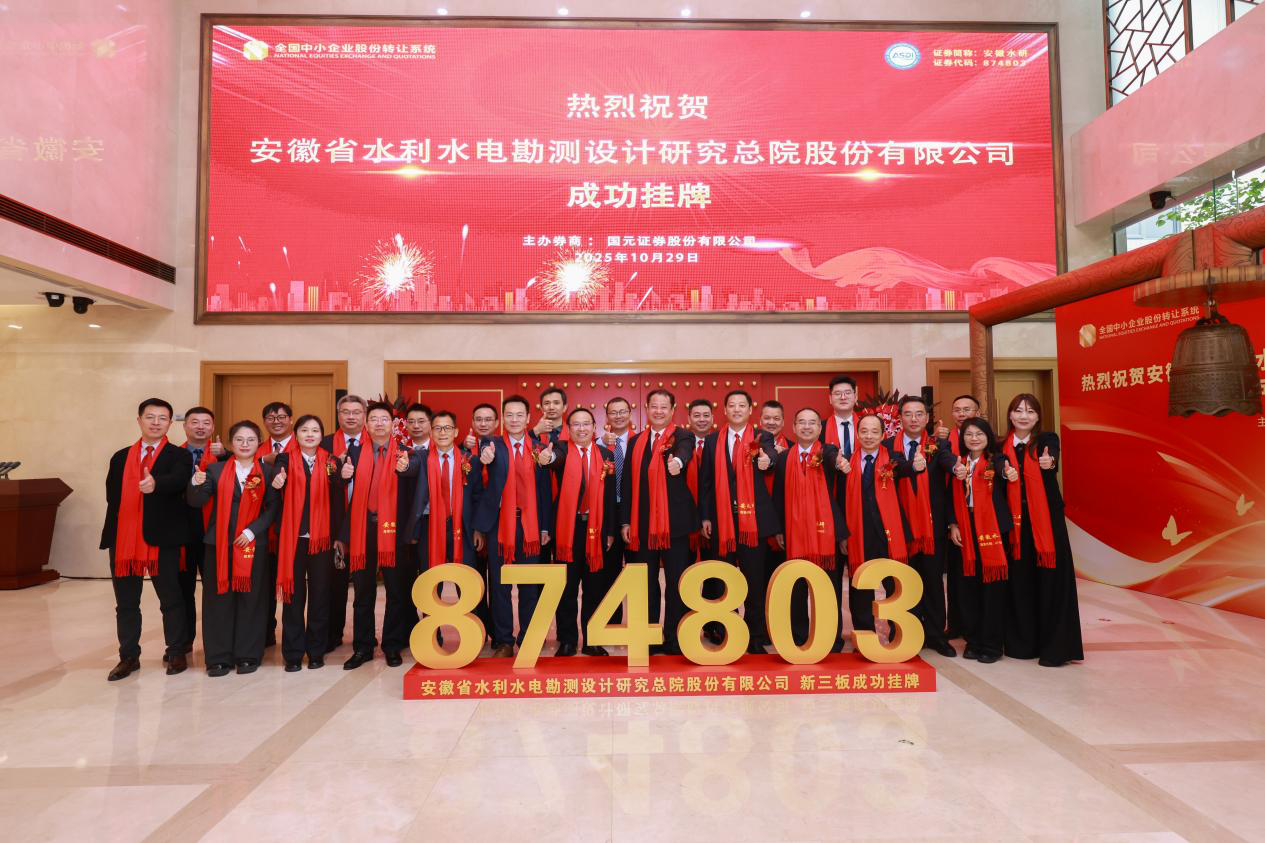 从佛子岭水库到淠史杭灌区,从淮河上的 “三峡工程” ——临淮岗洪水控制工程到安徽基础设施 “一号工程” 引江济淮工程,安徽水研数十年如一日,始终紧跟国家水利基础设施建设与生态文明建设导向,长期服务安徽水利顶层规划论证,深耕水利水电勘测设计领域,是区域水利建设的中坚力量。此次登陆新三板,安徽水研将借助全国股转公司这一国家级平台,进一步汇聚优质资源、激活发展新动能,在规范治理中提升核心竞争力,在资本运作中拓宽发展空间,深刻践行 “节水优先、空间均衡、系统治理、两手发力” 的新时期治水思路,以资本市场为依托,书写水利事业高质量发展的新华章。