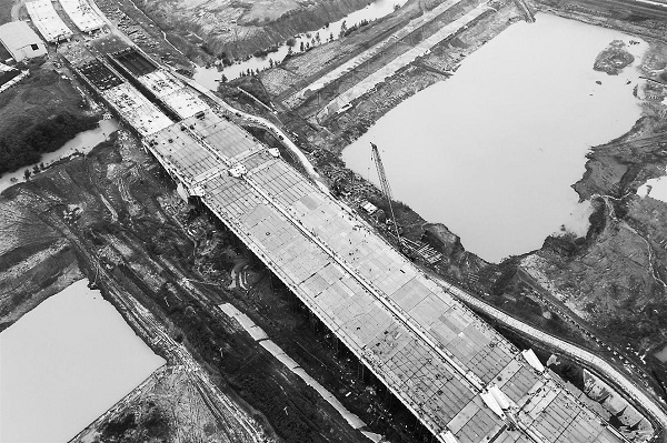 7月17日16时,随着最后一块桥面精确就位,由中铁二十四局集团承建的引江济淮铭传路桥顺利贯通。铭传路桥是引江济淮(合肥段)3座市政桥梁之一,位于合肥高新区境内,桥长610米,主跨长240米,桥面总宽56.8米,双向8车道,是目前合肥市市政桥梁中最大跨径中承式拱桥,桥下航道等级为II级。