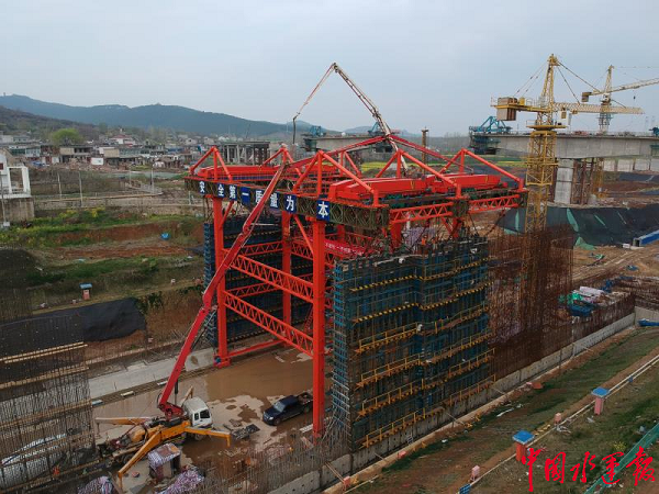 船闸施工现场四面环水,地质条件差,施工难度大,工期紧,项目部管理人员在决战疫情防控的同时统筹规划,合理布局,积极配置各方资源,确保首次闸室墙混凝土浇筑作业圆满成功。从前期施工准备到移动模架组装,再到钢筋绑扎、定型钢模板拼装、混凝土浇筑以及混凝土养护等各个工序,项目部实现安全技术层层交底,全体参建人员各司其职,相互配合。