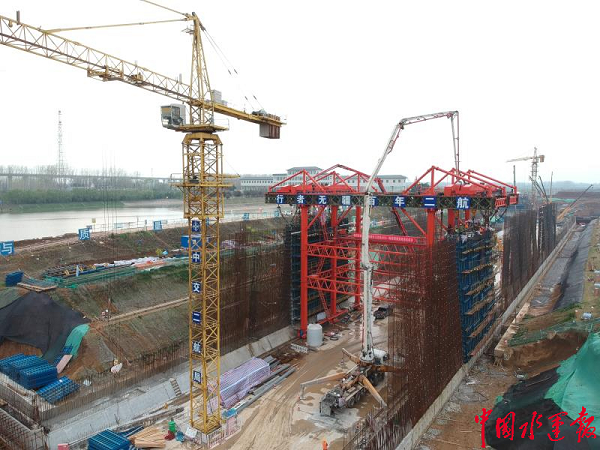 引江济淮东淝河船闸工程开始闸室墙浇筑